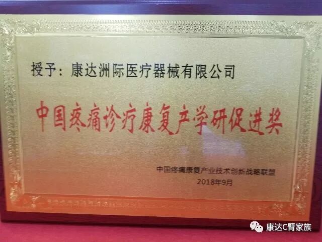 我会副会长单位康达洲际医疗器械有限公司作为国内大型的智造医疗器械企业,凭借其匠心打造的“天目”平板C形臂系列在疼痛诊疗方面的创新应用,在本次会上被授予“中国疼痛诊疗康复产学研促进奖”。